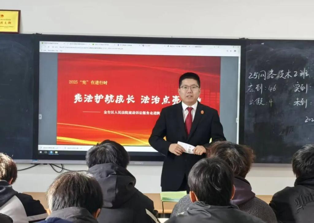活动现场,区法院立案庭法官助理顷海蒂紧密结合高校学生的年龄特点与成长需求,着力阐释《中华人民共和国宪法》作为国家根本大法的地位与作用。本次讲解不仅聚焦于《中华人民共和国宪法》中关于公民基本权利与义务的核心内容,同时还将与学生息息相关的“防范校园套路贷”“抵制刷单返利诈骗”等现实问题,结合《中华人民共和国宪法》关于人身自由、财产权等条款进行详细解读,引导学生们深刻理解《中华人民共和国宪法》赋予的权利与义务以及在日常生活中的具体体现。